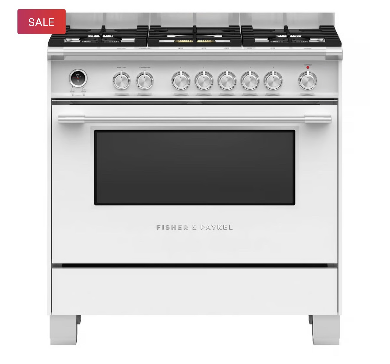 Fisher & Paykel 90cm Series 9 Classic 5 Burner Dual Fuel Pyrolytic Cooker – White OR90SCG6W1