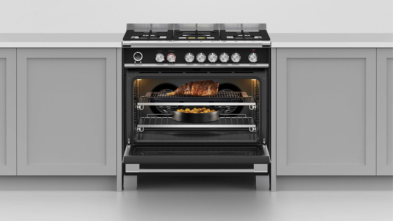 Every detail has been carefully crafted. The solid, perfectly balanced soft-close door, precise electric temperature control and chromed cast zinc dials all add up to an exceptional, premium range.